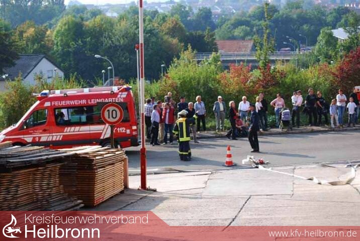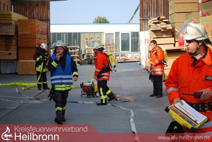 Die Hauptübung der Leingartener Feuerwehr wurde nach langer Zeit wieder einmal bei der Fa. Holz-Hauff im Industriegebiet abgehalten.
