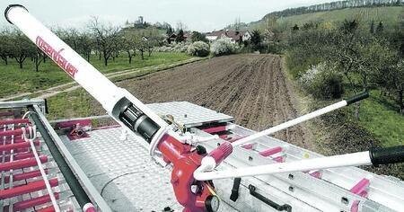 Foto: Vom Dach des Feuerwehrfahrzeugs sieht man den künftigen Bauplatz für das zentrale Magazin auf der Kuppe zwischen Beilstein und Schmidhausen. (Foto: Werner Kuhnle)