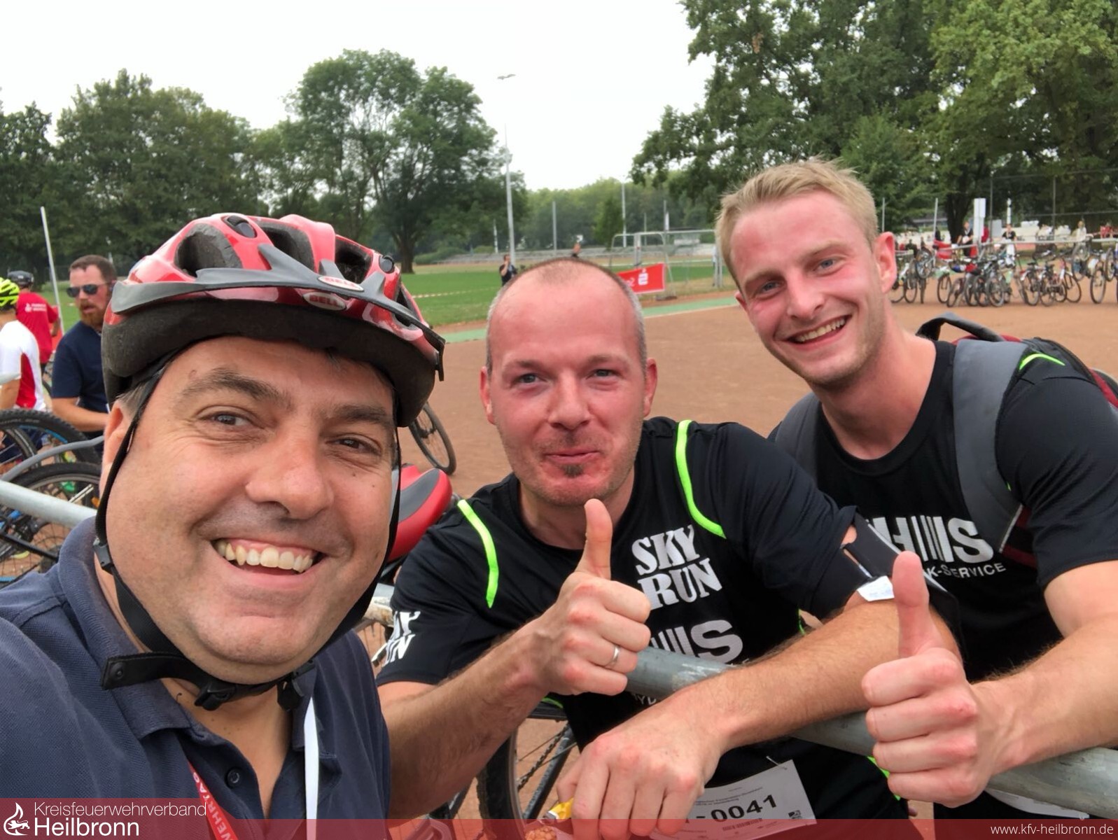 Am Sonntag waren drei Mitglieder der Feuerwehr beim Feuerwehr-Duathlon in Heidelberg am Start. Bei angenehmen Temperaturen liefen sie zunächst 5 km im Neuenheimer Feld, bevor sie mit dem Fahrrad auf die 20km-Strecke in Richtung Ladenburg und zurück gingen.