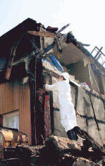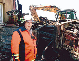 Bild 1: Nach 24 Stunden im Einsatz. Der Beilsteiner Feuerwehrmann Hans Sturm vor dem völlig zerstörten Anwesen in Billensbach
