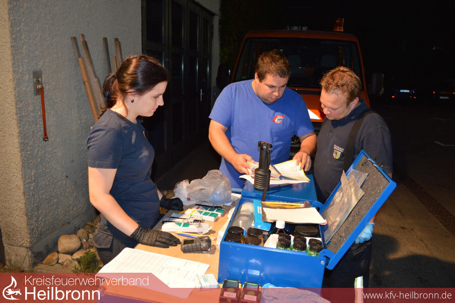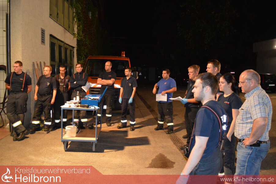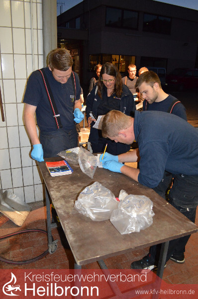 An insgesamt 11 verschiedenen Stationen konnten die verschiedenen Gruppen den Umgang mit den Mess- und Prüfgeräten in die Praxis umsetzen. Auch die Anwesenheit unserer Fachberaterin des Landkreises Heilbronn, Sigrid Aßfalg, war für die Feuerwehr eine Bereicherung. So konnte auch gleich die Zusammenarbeit und das bessere gegenseitige Kennenlernen gefördert werden. Die gemeinsame Arbeit beim Umgang mit Gefahrstoffen war für alle Seiten an diesem Abend sehr informativ. Nach der zweistündigen Fortbildung wurde der Abend mit sehr vielen Eindrücken und Erkenntnissen beendet. Herzlichen Dank an unseren Kameraden Albert Feinauer für die Vorbereitung dieses Abends und unserer Fachberaterin Sigrid Aßfalg, dass sie sich die Zeit für diese Fortbildung genommen hat. Ein besonderer Dank geht ebenfalls an die Firma Hettich und Heiner aus Wüstenrot-Neuhütten für die kostenlose Verfügungsstellung von Trockeneis.