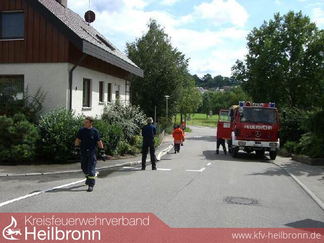 Den Erstangriff fuhr das Tanklöschfahrzeug der Feuerwehr Oedheim , unterstützt von dem Löschgruppenfahrzeug LF 8. Da ersichtlich war, dass diese Kräfte nicht ausreichen, wurde sofort das TSF Degmarn und die Feuerwehr Bad Friedrichshall alarmiert. Mit den Fahrzeugen von Bad Friedrichshall rückte auch das LF 8 der Feuerwehr Gundelsheim aus.