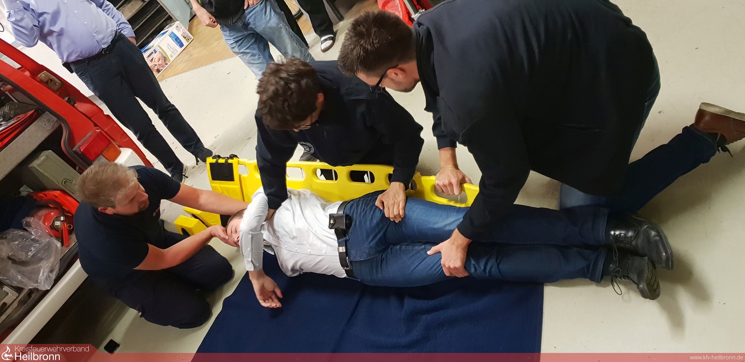 Am Dienstagabend, 9. Oktober 2018 fand ein gemeinsamer Übungsabend der Feuerwehr Gemmingen und des DRK Ortsverein Gemmingen im Feuerwehrhaus in Gemmingen statt. Um 20:00 Uhr trafen sich ca. 25 Feuerwehrler und Rotkreuzler, um sich mit dem Thema „Erste-Hilfe“ zu beschäftigen. Zu Beginn wurden die in der Feuerwehr vorhanden Notfallrucksäcke genauer unter die Lupe genommen. Anschließend erfolgten Ausführungen zur Stabilen Seitenlage, der Herz-Lungen-Wiederbelebung, zur Defibrillation und zur Einsatzmöglichkeit des Spineboards. Hierzu wurden auch Filme vom Internet zur besseren Veranschaulichung verwendet. Anschließend erfolgte die Aufteilung der Kameraden in drei Gruppen. Unter Aufsicht und Anleitung von Simon Ebert (Stabile Seitenlage), Carina Steinbach (Herz-Lungen-Wiederbelebung) und Dirk Leitz (Spineboard-Training) wurde das an diesem Abend gehörte nun praktisch geübt. Nach ca. zweieinhalb Stunden hatte jeder Teilnehmer des Übungsabends seine Erste-Hilfe-Kenntnis wieder etwas aufgefrischt.