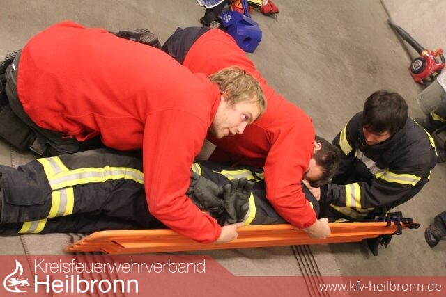 Da im Lauffener Feuerwehrhaus, wie schon berichtet, vorübergehend ein Rettungswagen des ASB untergebracht ist, hat man jetzt im November diese Situation ausgenutzt und mit den Kollegen des ASB den Gesamtfeuerwehrdienst durchgeführt und die Vorgehensweisen und die Maßnahmen des Rettungsdienstes etwas näher beleuchtet.