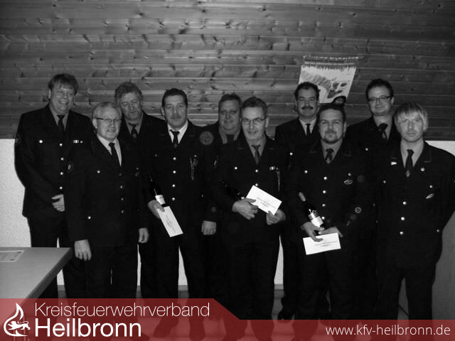 Für regelmäßigen Übungsbesuch bekamen Rolf Bender, Günter Schönborn, Klaus Gebhard, Manfred Hauser, Manfred Daub und Alexander Krysiak jeweils ein kleines Weinpräsent sowie einen Eppinger Gutschein. Ein besonderes Dankeschön erhielten Günter Weißert, Lothar Doster und Günther Schönborn. Sie haben im abgelaufenen Jahr die Wehr bei verschiedenen Gremien und Aufgaben vertreten und unterstützt. Dies ist keine Selbstverständlichkeit und ging über das normale Maß hinaus.