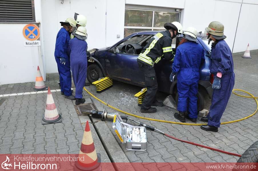 An einer weiteren Station kamen Spreizer und Schneidgerät zum Einsatz. Hier konnten die jungen Gäste selbständig unter fachkundiger Anleitung Scheiben und Türen an einem Übungsfahrzeug mit technischen Hilfeleistungsgeräten entfernen und Personenrettungen an Dummys üben.