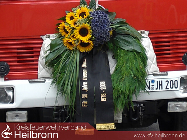 Weil es für das alte Löschgruppenfahrzeug das letzte Leistungsabzeichen war bekam es von der Mannschaft einen Kranz mit dem Text "Für 30 Jahre treuen Dienst" angebracht. Damit war das an diesem Abnahmetag älteste Fahrzeug der Blickfang schlechthin. Nun wartet die nächste Leistungsabzeichengruppe bestehend aus unseren jungen Kameraden auf das neue LF 10/6, um im nächsten Jahr bei Bronze anzufangen und mit dem neuen Fahrzeug eine neue Erfolgsgeschichte zu starten…