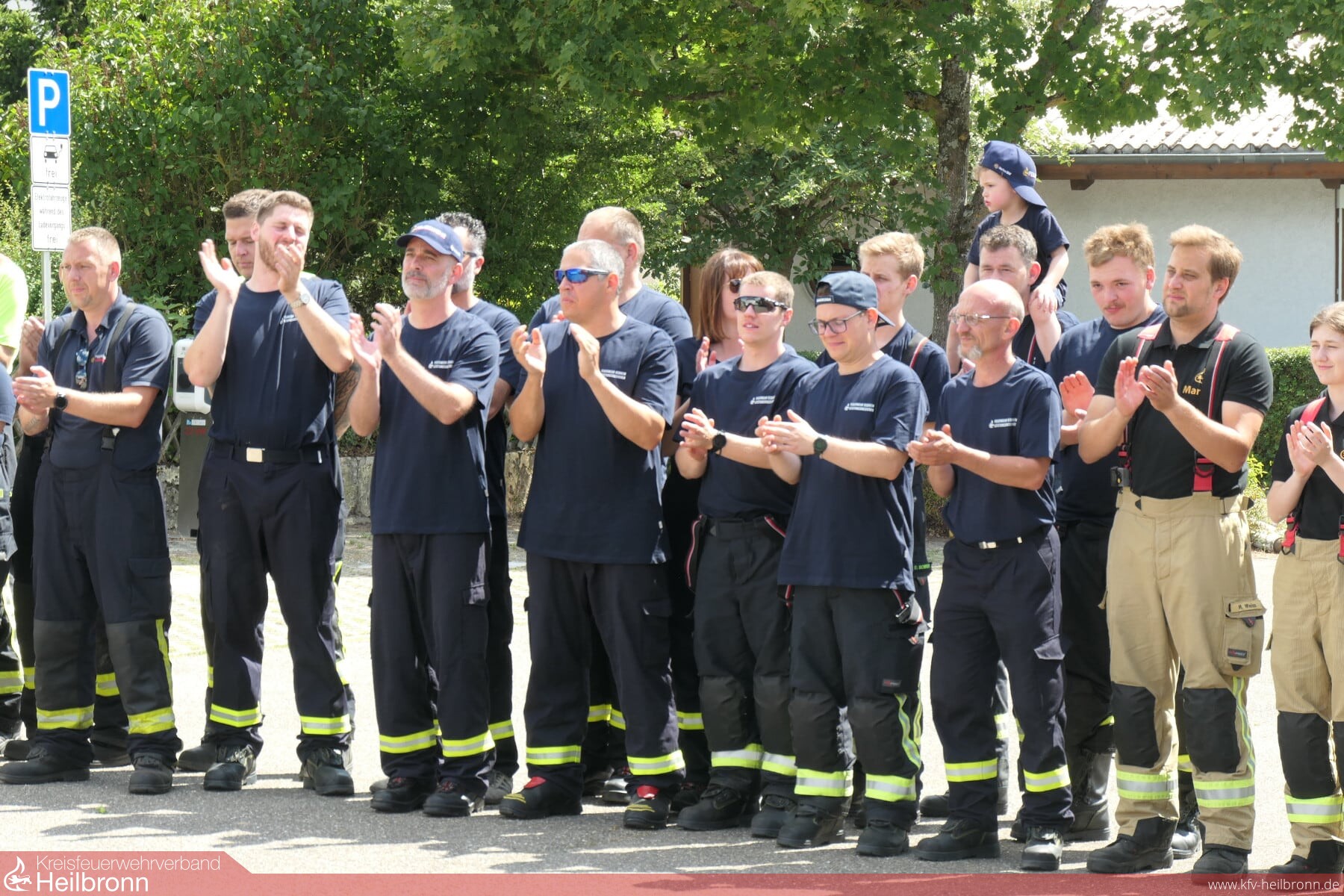 Besonders stolz ist die Freiw. Feuerwehr Oedheim auf zwei Gruppen aus den eigenen Reihen, die mit großem Erfolg das goldene Leistungsabzeichen erringen konnten. Bereits als 1. Gruppe am Samstagmorgen um 7.00 Uhr starteten sie mit der theoretischen Prüfung. Im Anschluss folgte der praktische Teil: ein Löscheinsatz bei einem simulierten Brand inkl. Menschenrettung aus dem OG und dem Hilfeleistungseinsatz bei einem Verkehrsunfall mit eingeklemmter Person.