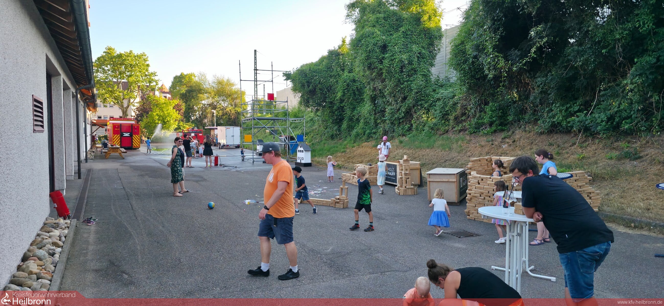 Für unsere kleinen Gäste war mit einer liebevoll gestalteten Spielecke bestens gesorgt. Besonders beliebt waren die großen Holzbausteine zum kreativen Bauen, die uns dankenswerterweise von der Firma HolzHauff aus Leingarten kostenlos zur Verfügung gestellt wurden, sowie die „Brandhäuser” der Jugendfeuerwehr, in denen die Kinder selbst in die Rolle kleiner Feuerwehrleute schlüpfen konnten.
