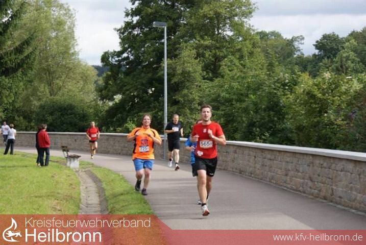 Doch nicht nur außerhalb des Laufs war die Feuerwehr präsent: zum dritten Mal in Folge stellte die Gesamtwehr das größte Team beim Gänslauf. Sage und schreibe 70 Frauen und Männer gingen für unsere Wehr an den Start. Das ist absoluter Rekord in der Geschichte des Sportereignisses. Unterstützung hatten wir dabei vom TSV Neudenau, der uns wie schon im letzten Jahr kameradschaftlich zur Seite stand.Mit 24 LäuferInnen mehr als das Team \"Herbalife\" war uns der Wanderpokal somit sicher. Da dieser nun zum dritten Mal in Folge an unser Team ging, darf er nun behalten werden. Er bekommt einen Ehrenplatz an unserer Pokalwand im Florianskeller!