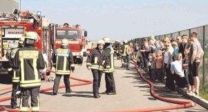 MotiviertAls "gut ausgebildet und motiviert" lobt der Bürgermeister die Truppe, die anschließend beim Feuerwehrfest feiert. "Hoffen wir mal, dass wir sie nicht brauchen", sagt Jürgen Pfitzenmaier, Brandschutzbeauftragter bei Landerer. Zuschauerin Ina Müller findet es "gut, dass es so viele Freiwillige gibt, die sich engagiert für uns einsetzen". Auf den Schultern von Papa Andreas ist auch Laura Großkopf (4) beeindruckt: "Weil die Feuerwehrmänner so cool aussehen."