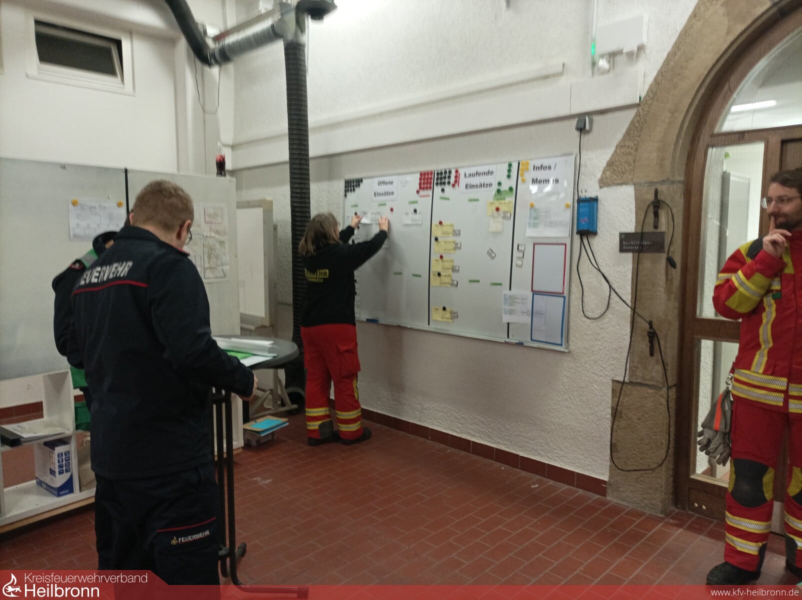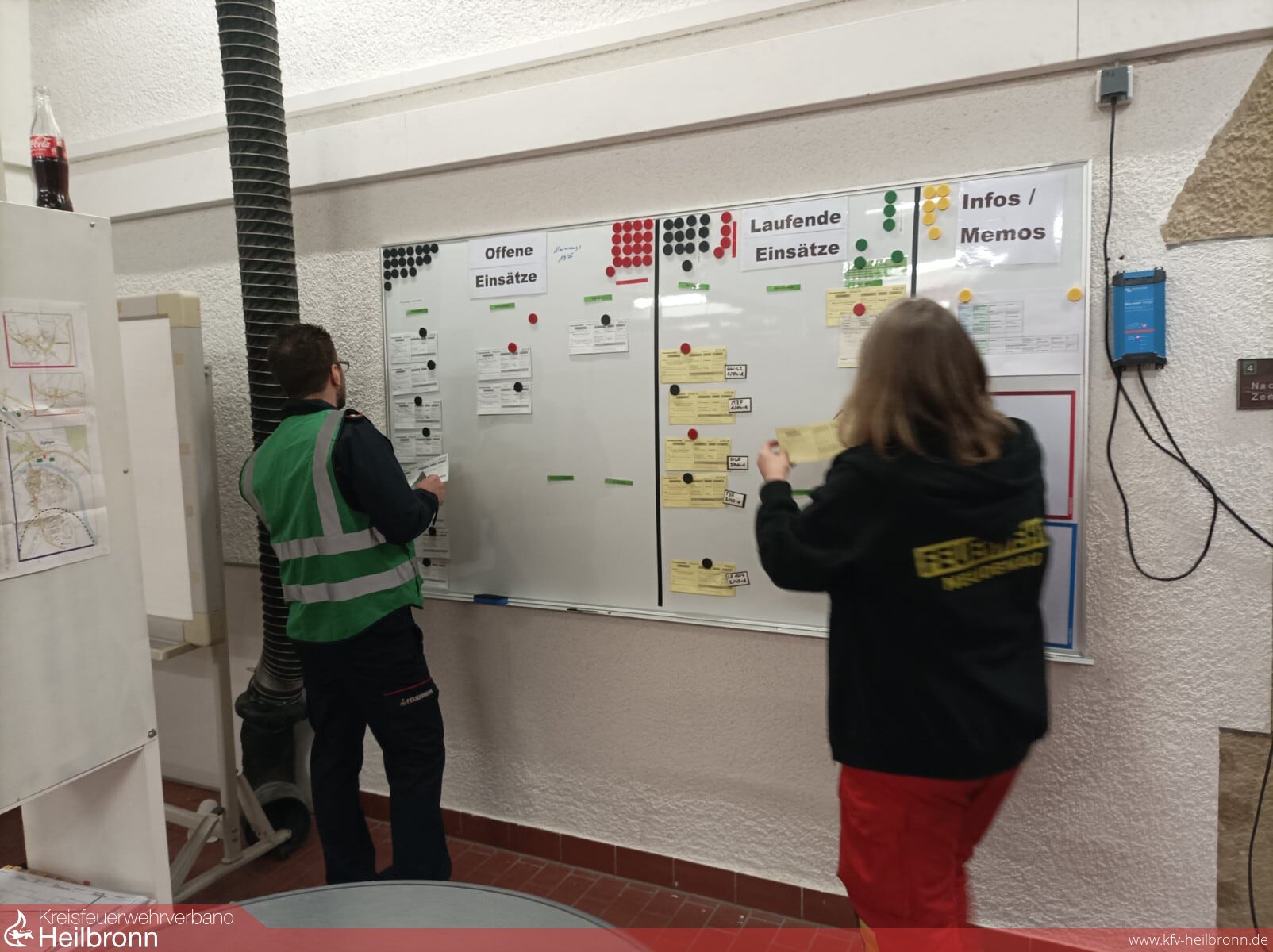Am Übungsabend spielten die Kameraden der Feuerwehr Neckarsulm etwa 60 Einsätze in gut anderthalb Stunden ein, die dann von der Führungsgruppe bearbeitet werden mussten. Viele Kräfte wurden fiktiv zur Unterstützung nachalarmiert, da bei dieser Vielzahl an Einsätzen die Feuerwehr Neudenau an ihre Grenzen stoßen würde. Die Führungsgruppe bearbeitete stets konzentriert und ruhig ihre Aufgaben, konnte aber unter fast realistischen Bedingungen die Schwierigkeiten solcher Lagen erleben. Ein guter und erfolgreicher Übungsabend!