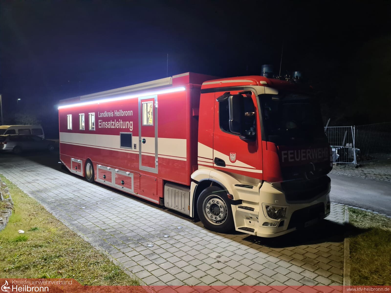 In der letzten Übung der Fachgruppe wurde solch eine große Unwetterlage gespielt. Hierzu kam extra der Einsatzleitwagen-2 des Landkreises Heilbronn, der bei der Feuerwehr Neckarsulm stationiert ist, nach Neudenau. Dieser 18-Tonner wird von der Fernmeldegruppe Neckarsulm betrieben und kann zu Einsätzen im ganzen Landkreis alarmiert werden. Ob als Besprechungsraum für die örtliche Einsatzleitung oder im Stabsmodus mit der Führungsunterstützungseinheit des Landkreises, der ELW ist für alles gewappnet.