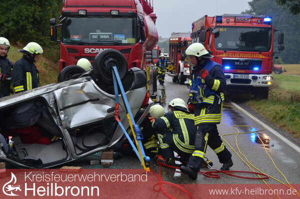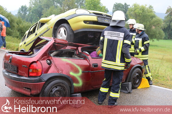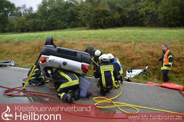 Die Autos sind zum Teil ineinander verkeilt, liegen auf dem Dach oder sind den Hang zur Langwiese hinabgestürzt. Auch Hilfeschreie eingeklemmter Personen sind zu hören. Acht Minuten, nachdem von einem hinzukommenden Verkehrsteilnehmer der Notruf 112 abgesetzt worden ist, sind die ersten Fahrzeuge aus Leingarten zur Stelle. Einsatzleiter Jochen Reske erkundet die Lage. Rasch erkennt er das Ausmaß des Geschehens, weist die Feuerwehrleute ein und fordert weitere Einsatzkräfte benachbarter Hilfsorganisationen sowie Rettungswagen an. Kurz danach treffen die Feuerwehren aus Schwaigern mit den Teilorten Stetten und Massenbach sowie aus Lauffen ein.