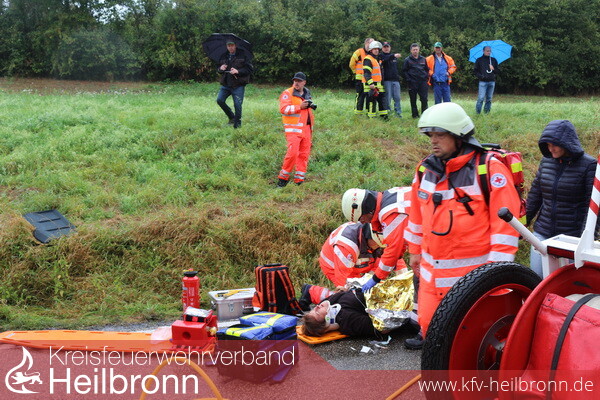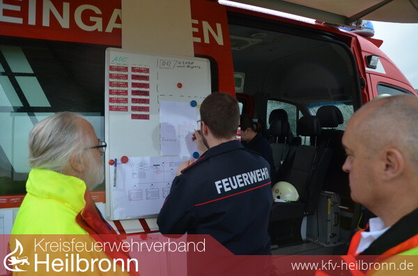 Bei dem inszenierten Verkehrsunfall auf der K 2048 zwischen Leingarten und Schwaigern-Massenbach waren 26 DRK-Mitglieder aus den Ortsverbänden Leingarten, Abstatt, Nordheim und Heilbronn im Einsatz. Die Leitung hatten der Leingartener DRK-Vorsitzende Dr. Georg Breuer (leitender Notarzt) sowie sein Stellvertreter Thomas Krieger (organisatorischer Leiter). Aufgrund der Schwere des Unfalls, der laut Drehbuch sieben Tote sowie zwölf Schwer- und Leichtverletzte forderte, und der unübersichtlichen Lage zwischen den Autowracks, hatten sie fünf imaginäre Rettungshubschrauber, 20 Rettungswagen und acht Notärzte angefordert.