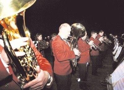 Bild: "Ich bete an die Macht der Liebe" von Dmitrij Bortnjanski intonierten die Neckarwestheimer Musiker beim Gebet während des Großen Zapfenstreichs im Fackelschein. (Foto: Uwe Mundt)