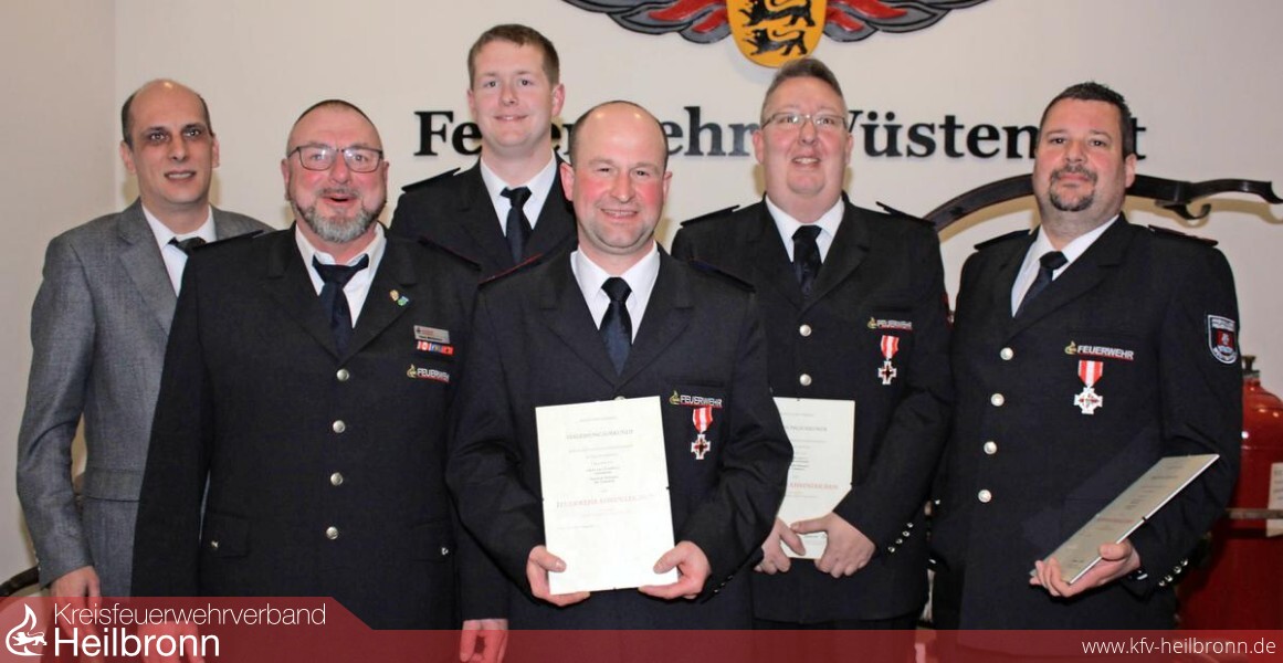 Geehrt wurden für 25 Jahre aktiven Dienst Timo Dauner, Armin Ehmann, Andreas Gauker und Jens Kunkel. Außerdem wurde die Beförderung von Alexander Schoch zum Löschmeister bekanntgegeben.