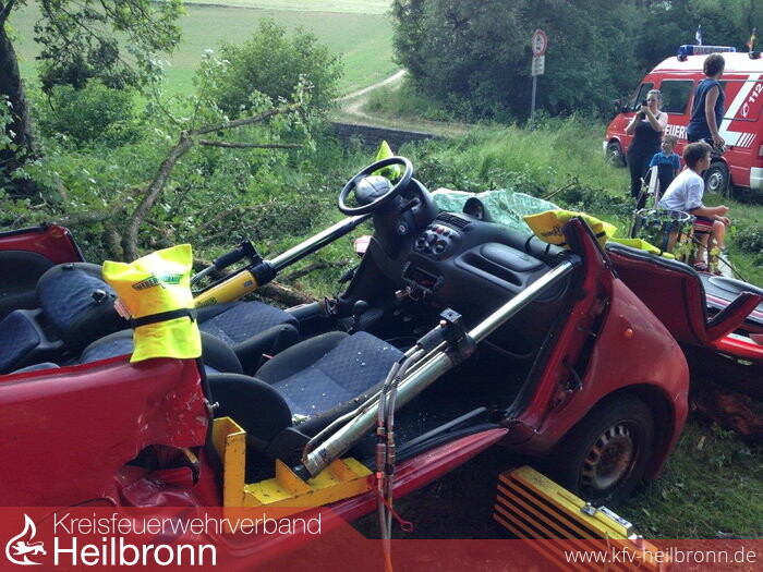 Diese Einheit bildete den Abschnitt I und kümmerte sich anschließend um den verunfallten PKW, welcher unter zwei umgestürzte Bäume geraten war, der Fahrer war schwer eingeklemmt. Diese Rettungsaktion gestaltete sich für die Einsatzkräfte schwierig.