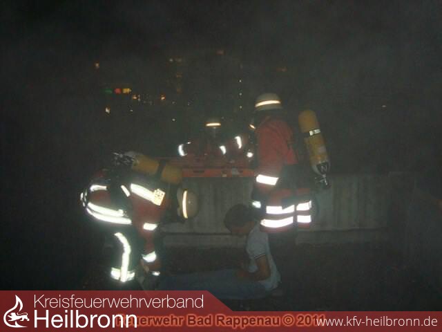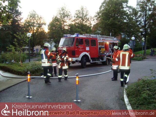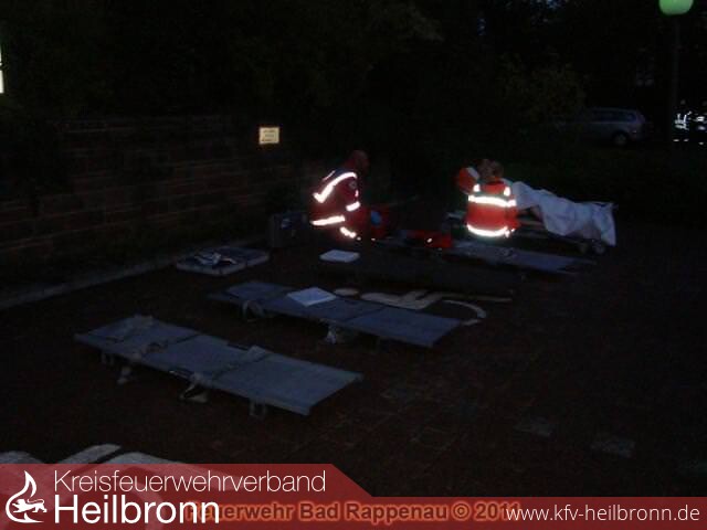Nachdem feststand, dass insgesamt sechs Personen im Gebäude vermisst waren (davon vier Mitglieder der Jugendfeuerwehr), entschied sich Einsatzleiter Michael Harrer dazu, den Ortsverein Bad Rappenau des DRK zu alarmieren.