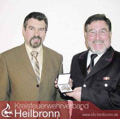 Kreisbrandmeister Hans-Wilhelm Hansmann sprach seinen Dank für die geleistete Arbeit im Namen des Landkreises Heilbronn aus. Reinhold Korb als Kreisfeuerwehr-Verbandsvorsitzender lobte Kurt Herbstritt als einen Mann, der sein Hobby mit „harter Arbeit“ und mit „bester Kraft“ gemacht habe und überreichte eine Urkunde mit der Ehrennadel des Kreisfeuerwehrverbandes Heilbronn.