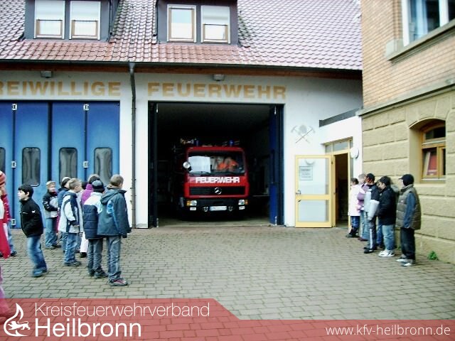 Am 9 Januar 2007 besuchte die Grundschule Massenbach mit fast 40 Kindern die Feuerwehr in Massenbach. Nachdem jeder einen Platz im Mannschaftsraum eingenommen hatte, waren die Kinder sichtlich gespannt was alles auf sie zukommt. Nach der Begrüßung wurden die Kinder über die Aufgaben einer Freiwillige Feuerwehr, über Gefahren bei Einsätzen, über das richtige Absetzen eines Notrufes und die Verhaltensweise im Brandfall unterrichtet. Die Mädchen und Jungen der 4.Klasse hatten dazwischen sehr viele Fragen zu den Themen. Nach einer kleinen Erfrischungspause ging es dann weiter. Es wurde ein Rauchmelder vorgestellt und dieser dann auch ausprobiert. Als die Frage gestellt wurde wer zu Hause kein Rauchmelder hat, streckten doch noch einige. Die wurden dann sofort mit Infomaterial versorgt, das hoffentlich auch bei den Eltern zu Hause angekommen ist. Der nächste Programmpunkt war das Atemschutzgerät und dessen Funktionsweise. Aufmerksam verfolgten die Kinder den Erklärungen und das Anlegen des Gerätes. Auch hier wurden wieder zahlreiche Fragen gestellt. Zum krönenden Abschluss war dann noch die Besichtigung des Feuerwehrautos angesagt. Es wurden sämtliche Geräte erklärt und auch an die Leitstelle nach Heilbronn gefunkt. Die Grundschulkinder der 4.Klassen waren sehr aufmerksame und wissbegierige Zuhörer und trugen somit zu einem gelungenen Vormittag bei. Einige könnten sich vorstellen bald bei der Jugendfeuerwehr Schwaigern mitzuwirken. Wir würden uns natürlich sehr darüber freuen.