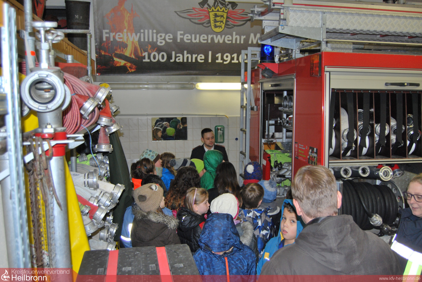 Bei nasskaltem Schmuddelwetter trafen fast 20 Kinder der 4. Grundschulklasse aus Schwaigern-Massenbach im Feuerwehrhaus der Massenbacher Abteilung ein. Als jeder seinen Platz im Schulungsraum gefunden hatte wurde die Gäste vom frischgebackenen Abteilungskommandant Dominik Glasbrenner herzlich begrüßt. Er gab einen kurzen Überblick über den Ablauf des Vormittags bekannt und stellte seine Helfer vor.