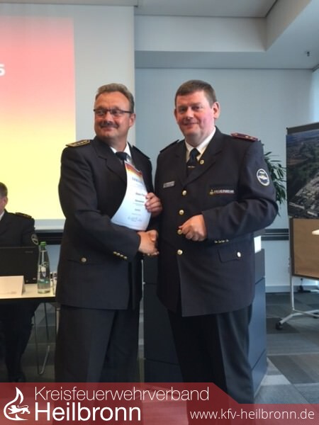 Der Verbandsvorsitzende Reinhold Gall gratuliere an Ort und Stelle im Rahmen der Verbandsversammlung der AGWF in Neckarsulm. „Günter ist mit Leib und Seele Feuerwehrmann, im Beruf und im Ehrenamt, Kamerad und zur Stelle wenn er gebraucht wird. Kurzum, er hat die Ehrung verdient und unser Verband gratuliert herzlich zu dieser Auszeichnung“.