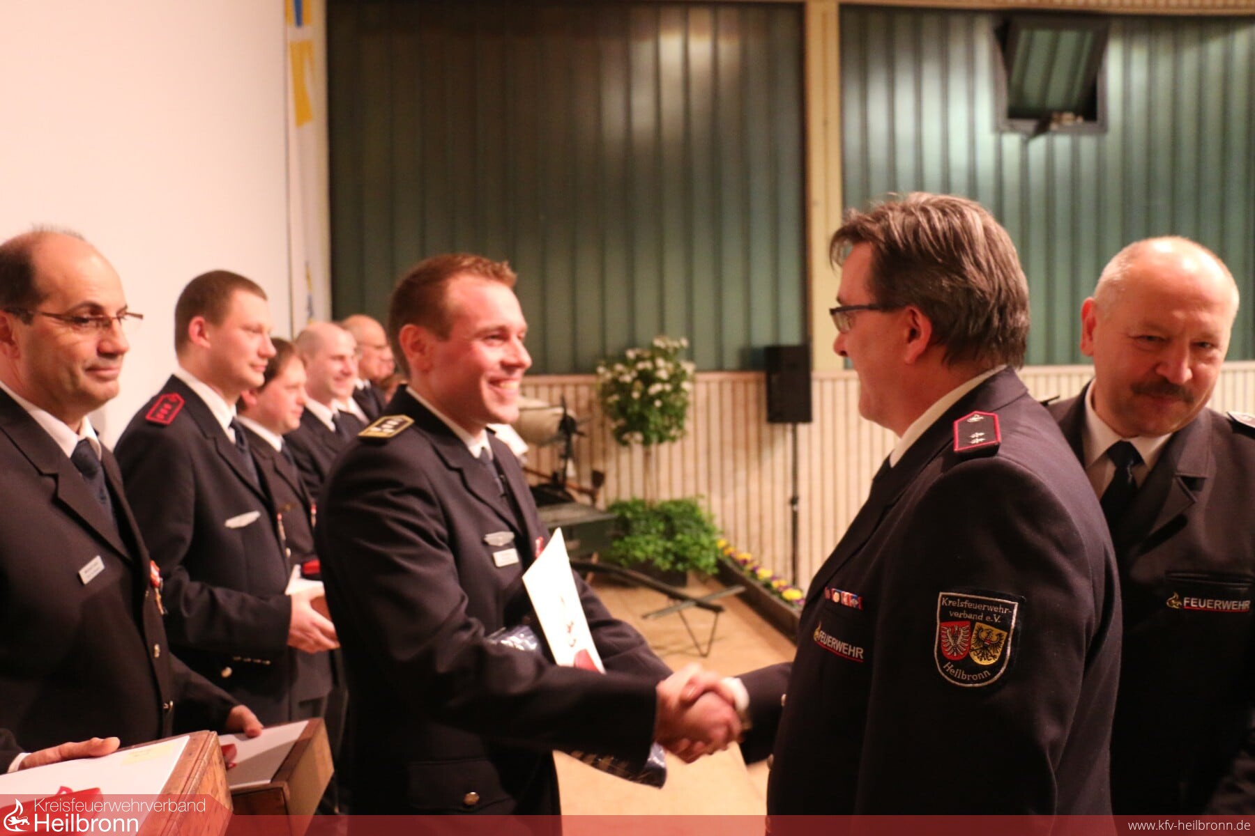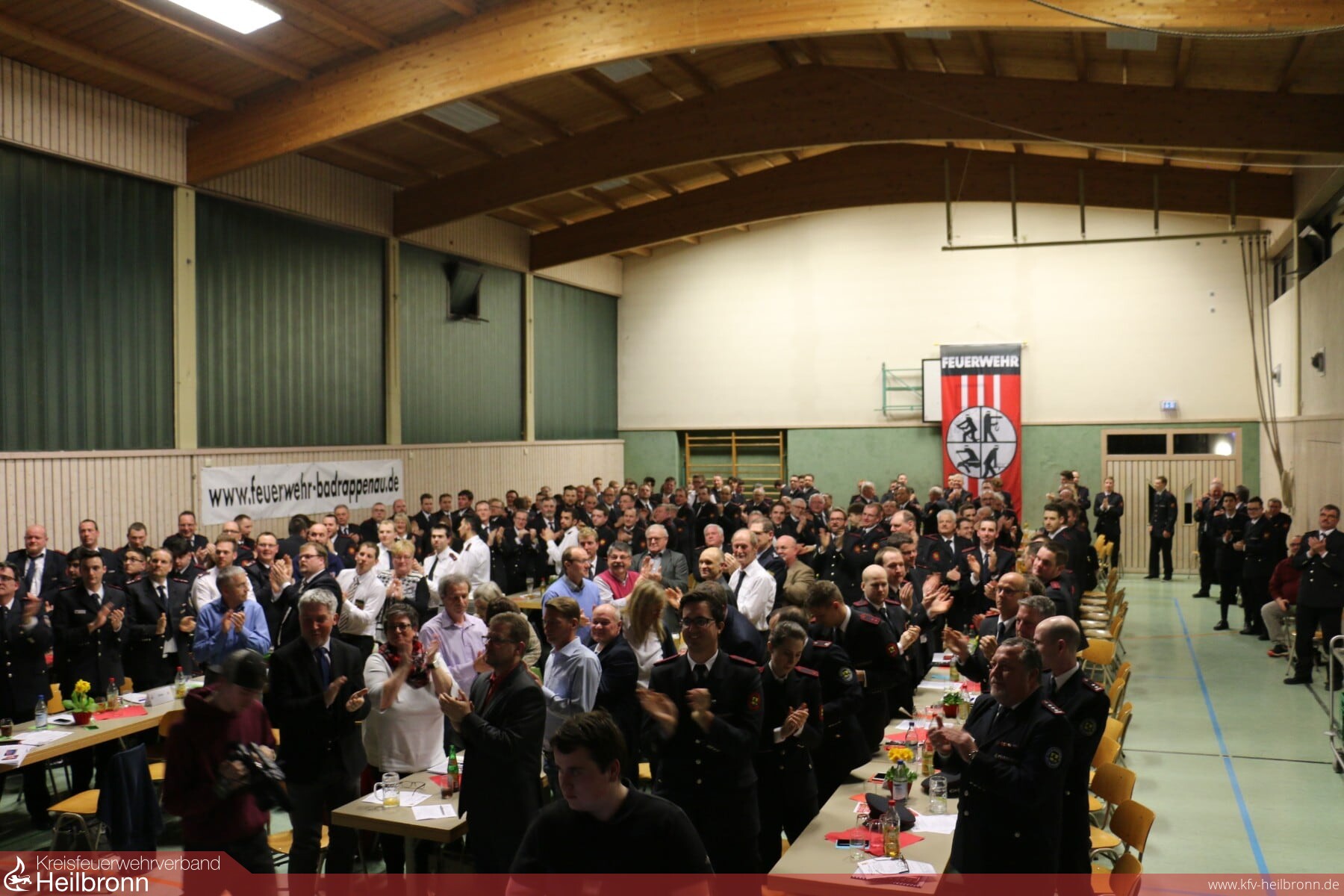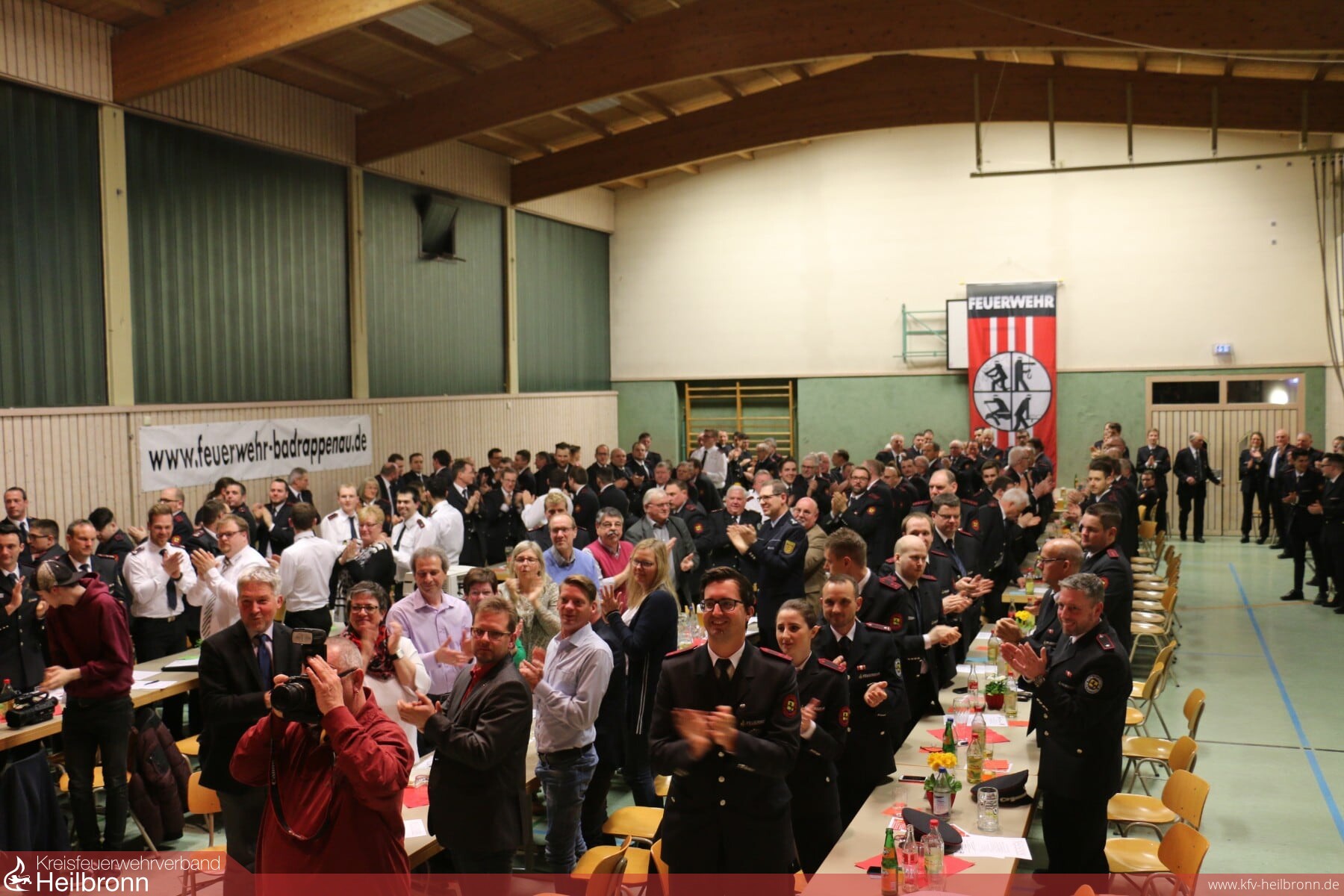 Bad Rappenau-Treschklingen. Beifallsbekundungen im Stehen für den Stadtkommandanten: Auch Felix Mann wurde bei der jüngsten Jahreshauptversammlung der Bad Rappenauer Feuerwehr für über 15 Jahre aktiven Dienst geehrt. Dazu hatte die Stadt am Samstag in die Kirchberghalle nach Treschklingen eingeladen. Hier versammelten sich Kameraden der Abteilungen Stadt, Babstadt, Grombach, Heinsheim, Obergimpern, Wollenberg und Süd. Letztere setzt sich aus den ehemaligen Wehren aus Bonfeld, Fürfeld und Treschklingen zusammen. Diese wurden im vergangenen Jahr aufgrund der renovierungsbedürftigen Gerätehäuser und geringer Einwohnerzahlen zusammengelegt und ein neues, modernes Haus an einer zentralen Stelle errichtet(die RNZ berichtete).