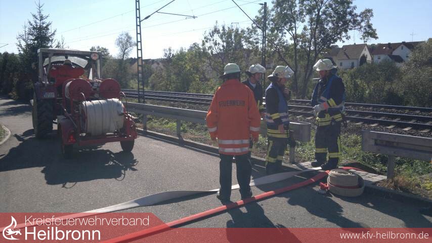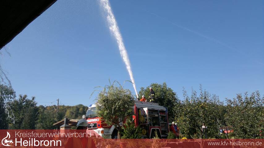 Die weiteren Einheiten waren, das Staffellöschfahrzeug (StLF 10/6) aus Siglingen, das ebenfalls in die Brandbekämpfung eingebunden wurde, das Tragkraftspritzenfahrzeug (TSF) aus Reichertshausen und der Gerätewagen (GW) aus Neudenau. TSF und GW wurden zur nahegelegenen Jagst beordert um die Wasserversorgung sicherzustellen. Zusammen mit den Kameraden aus Kreßbach wurden drei B-Leitungen zur Wasserversorgung an die Brandstelle gelegt. Pro Leitung werden ca. 800 Liter Wasser pro Minute gefördert.