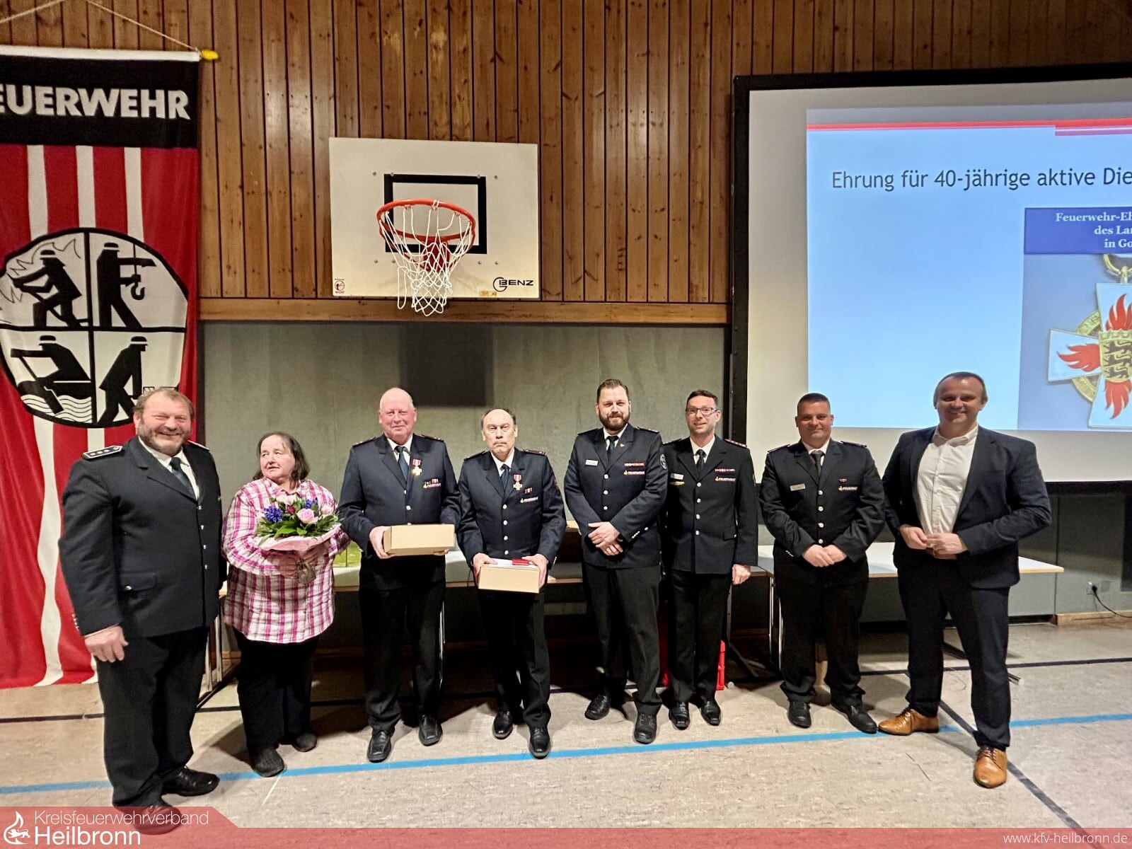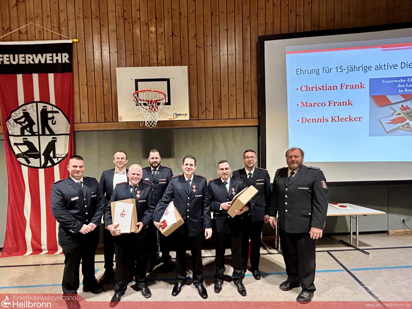 Kreisbrandmeister Heiner Schiefer, der Vorsitzende des Kreisfeuerwehrverbandes Frank Pitz und die zwei Kommandanten der Nachbarfeuerwehren Beilstein und Mundelsheimanwesend.