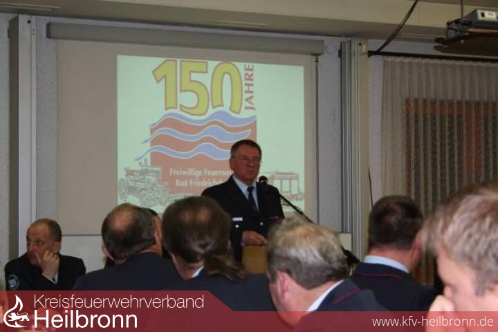 Vorbereitungen für das große JubiläumsjahrEr erinnerte auch an die Gründung der Feuerwehr Kochendorf im Jahr 1861; die Feierlichkeiten anlässlich des 150-jährigen Bestehens einer Freiwilligen Feuerwehr in Bad Friedrichshall beginnen im Mai 2011 mit einem dreitägigen Fest im Bereich der Sebastianskirche und des Greckenschlosses, auch ein Oldtimertreffen ist geplant. Im Juli werden die Abnahmeprüfungen für den Erwerb der Feuerwehrleistungsabzeichen der Landkreisfeuerwehren und die Abnahme der Jugendflammen beim Sportpark stattfinden, und der Jubiläums-Festabend findet am Vortag des Gründungstages, Samstag, 17. September, in der Lindenberghalle statt.