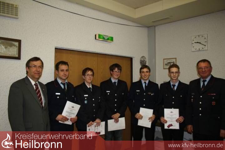 Bürgermeister Peter Dolderer würdigte den Einsatzwillen und das große Engagement der Feuerwehrleute. Die Leistung unserer Feuerwehr ist nicht nur in unserer Stadt anerkannt, sondern auch in den Nachbargemeinden und im ganzen Landkreis. Dolderer verpflichtete Jan Bublik zum Feuerwehrmann. Aufgrund ihrer Leistungen in der Freiwilligen Feuerwehr Bad Friedrichshall und nach erfolgreicher Teilnahme an den vorgeschriebenen Lehrgängen wurden zum Oberfeuerwehrmann befördert: Patrick Widenmeyer, Stefan Veith, Thomas Remmlinger, Steffen Reinke, Marcel Hoffmann, Alexander Bublik; Melanie Vogt wurde zur Hauptfeuerwehrfrau befördert.