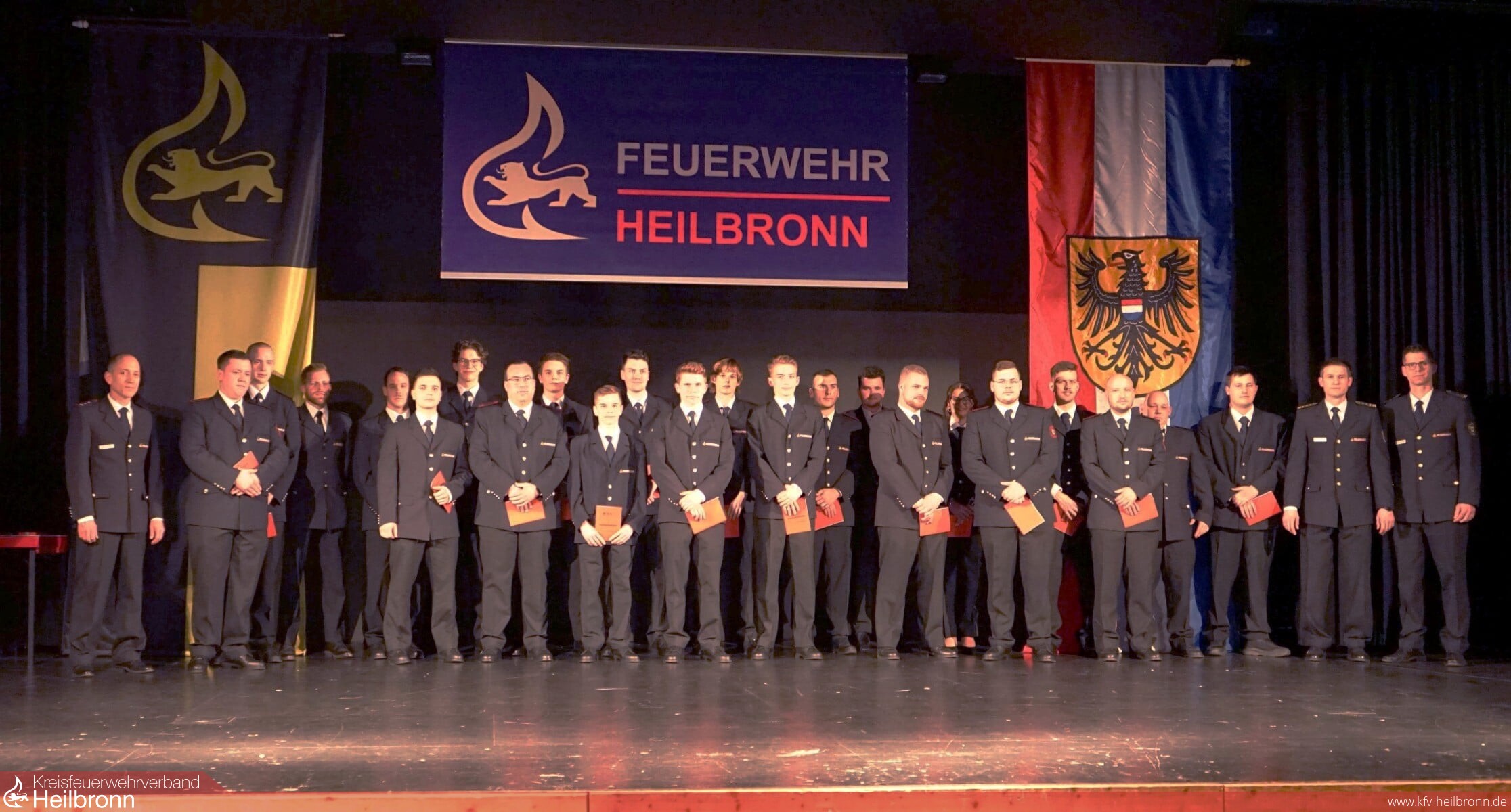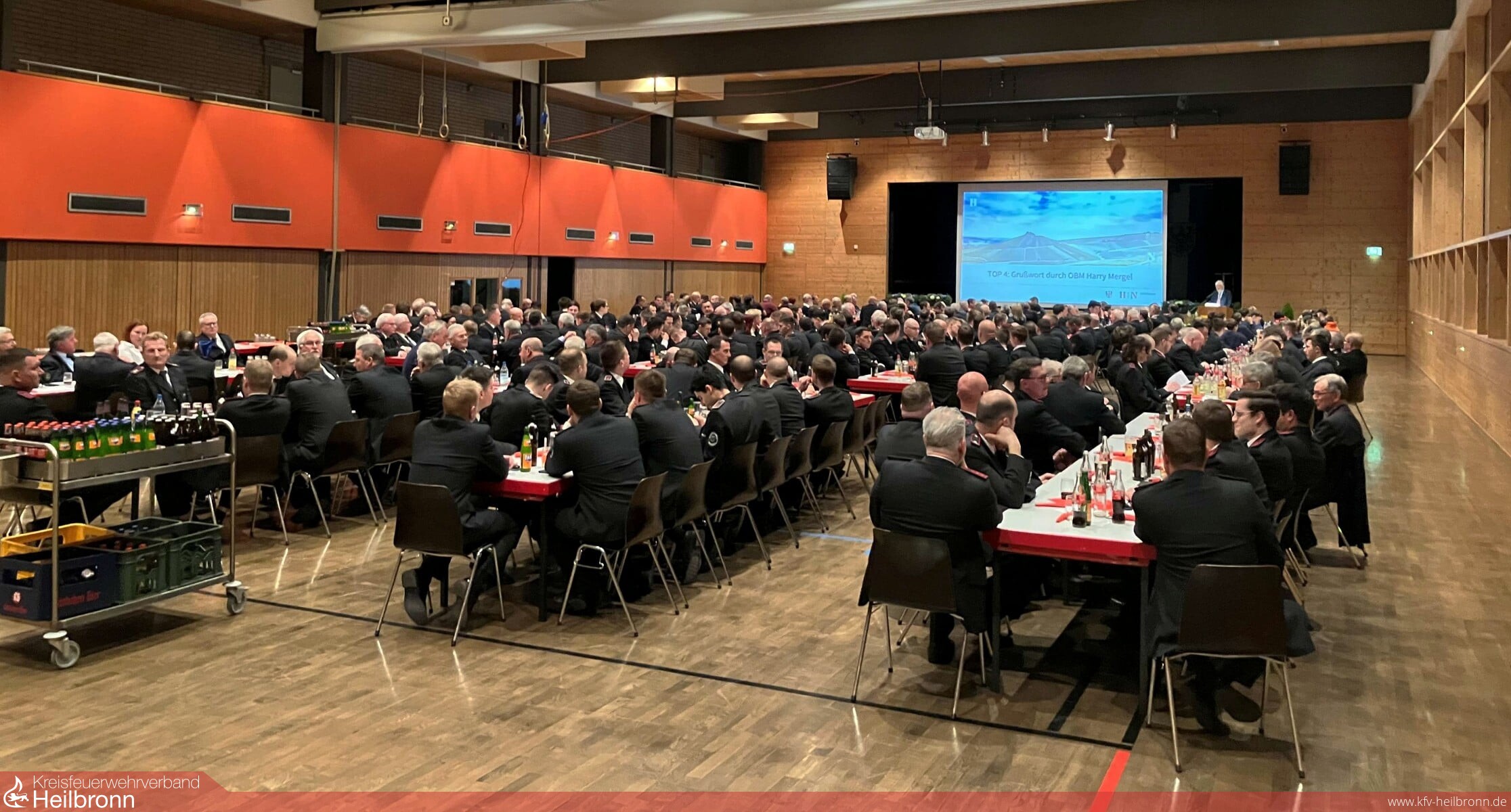 Mit den Worten von Bundekanzler Olaf Scholz aus der Sicherheitskonferenz in München „Ohne Sicherheit ist alles nichts!“ eröffnete Feuerwehrkommandant Fabian Müller gestern die Hauptversammlung der Feuerwehr Heilbronn. Rund 400 Gäste, darunter viele Vertreter aus der Politik, der Polizei und anderen Organisationen sowie zahlreiche Angehörige der Heilbronner Feuerwehr waren in die Neckarhalle gekommen. Kommandant Müller betonte in seinem Redebeitrag, dass die Aufgaben der Feuerwehr wieder mehr geworden sind. „Neben den eigentlichen Kernaufgaben gewinnt auch der Katastrophen- und Zivilschutz zunehmend an Bedeutung. Eine immer weiterwachsende Stadt braucht auch eine leistungsfähige Feuerwehr mit gut ausgebildetem Personal, moderner Technik und zeitgemäßen Gebäuden für die Berufs- und Freiwillige Feuerwehr. Den Grundstein hierfür haben wir mit der Feuerwehrkonzeption 2030 bereits gelegt.“