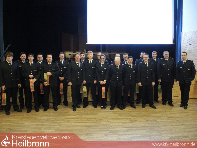 Um ihren Aufgaben gerecht zu werden, brachte es die Aktive Wehr auf 2.023 Übungsstunden. Hinzu kamen noch 750 Stunden, die für Lehrgänge und Fortbildungen aufgebracht wurden. Diesen hohen Ausbildungsstand lobte auch Reinhold Gall MdL und Vorsitzender des Kreisfeuerwehrverbandes in seinen Grußworten. Weiter würdigte er die gute Jugendarbeit des Teams um den Jugendfeuerwehrwart Fabian Vogt, der hiermit der Aktiven Wehr kontinuierlich neue Mitglieder einbringt. Die aktiven Kameraden konnten ihre Fähigkeiten dann auch mit dem Erwerb des goldenen Leistungsabzeichens vervollständigen und eindrucksvoll demonstrieren. Weiterer Beweis für die gute Arbeit des Ilsfelder Kommandanten Steffen Hebers und seines gesamten Teams waren 18 Beförderung die im Zuge der Hauptversammlung vorgenommen werden. Zum Feuerwehrmann auf Probezeit wurde befördert: Yannick Bässler, Simon Conrad, Mario Dittmann, Christian Knödler, Luca Mahle.