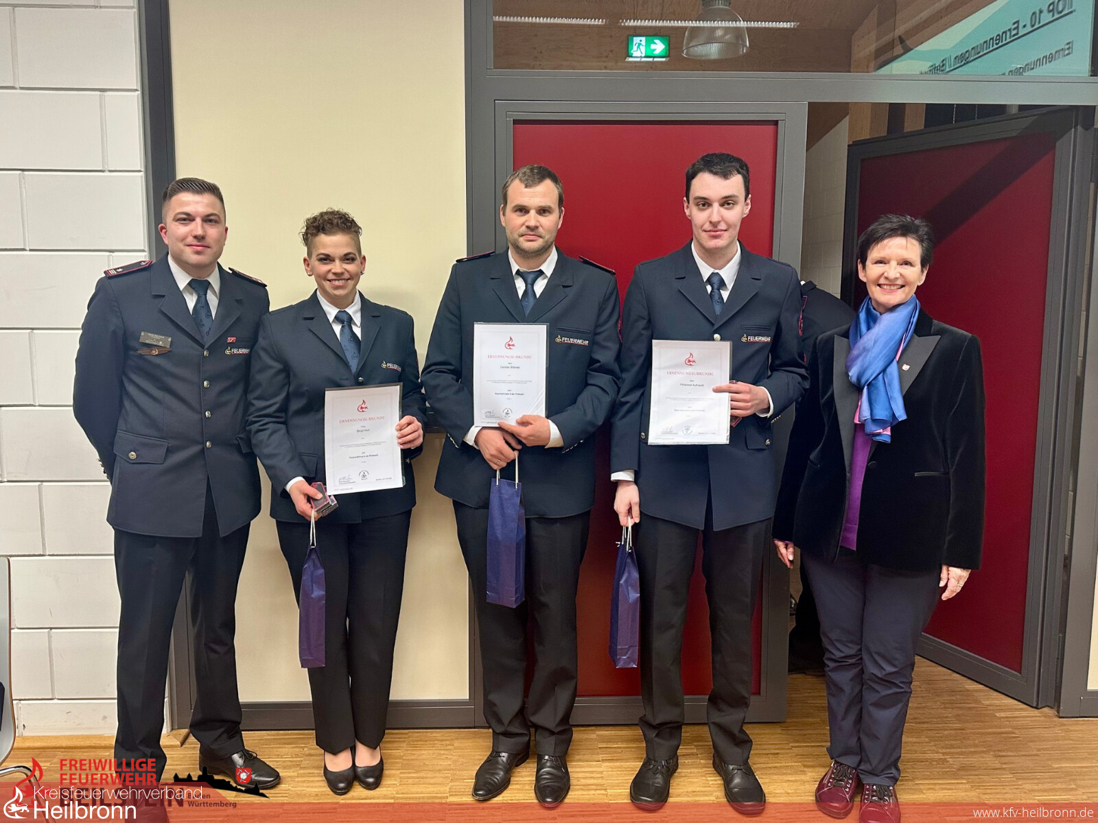 Neben Beförderungen für absolvierte Lehrgänge und Zugehörigkeiten wurden zahlreiche Ehrungen ausgesprochen. Für 40 Jahre ehrenamtlichen Dienst erhielten Rainer Heidinger, Günter Lauterwasser und Uwe Herrmann das Feuerwehr-Ehrenzeichen des Landes Baden-Württemberg in Gold. Weitere Ehrungen gab es für 15 und 25 Jahre Dienstzeit.