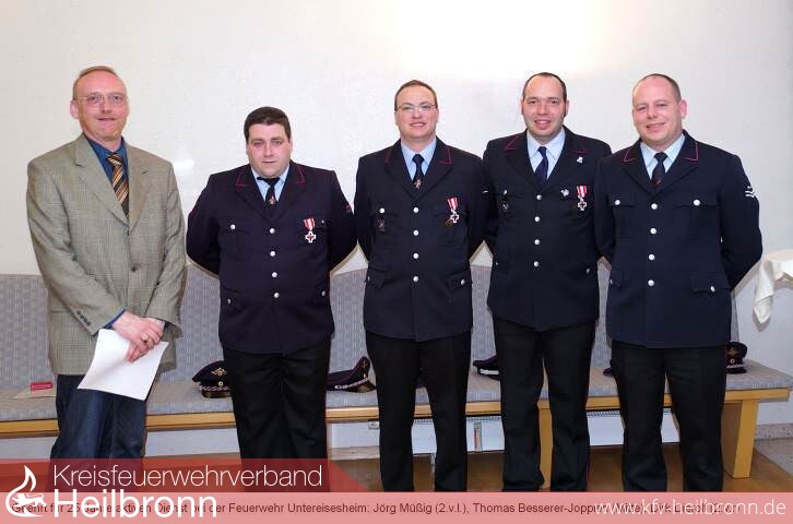 Ein besonderes Jubiläum konnten unsere Kameraden Jörg Müßig, Thomas Besserer-Joppien und Dirk Dierolf feiern. Sie sind seit 25 Jahren Mitglied der Freiwilligen Feuerwehr Untereisesheim. Feierlich überreichte Herr Bürgenmeister Bock den Jubilaren eine vom Innenminister Rech unterzeichnete Urkunde sowie ein Ehrenabzeichen.