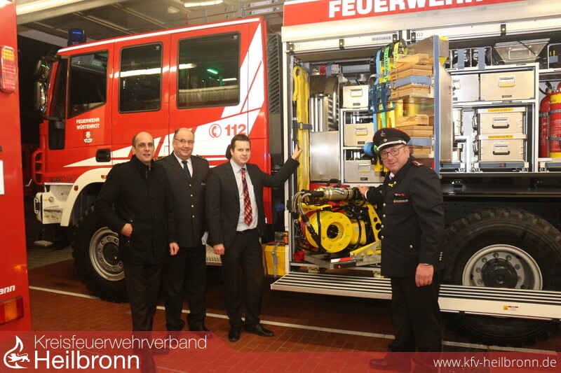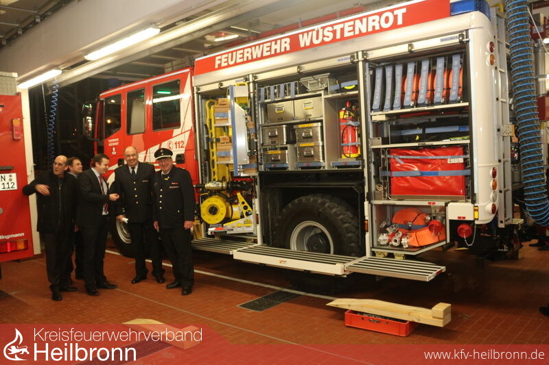 Mit dem Eintreffen des neuen Einsatzfahrzeugs tritt für 80 Wüstenroter Feuerwehmänner die vorangegangene Hauptversammlung in den Hintergrund. Das bullige Auto wird sofort von allen Seiten in Augenschein genommen, Innenraum und Ladung werden eingehend inspiziert. Andreas Reh, Mitglied des Überführungsteams und stellvertretender Kommandant: „Jetzt wird geübt, dann hoffen wir, dass wir in einem Vierteljahr das HLF offiziell in Dienst stellen können“. „Das Geld der Gemeinde und der Landeszuschuss in Höhe von 99000 Euro sind sehr gut investiert“, ist Kreisbrandmeister Uwe Vogel überzeugt. „Heute ist für die Feuerwehr Wüstenrot ein besonderer Freudentag“, kündigt der Wüstenroter Feuerwehrkommandant Hans Mühlmann zu Beginn der Jahreshauptversammlung die Ankunft der seit Wochen sehnsüchtig erwarteten Neuanschaffung an. Durch Umstrukturierungen beim Hersteller habe sich die Auslieferung verzögert.