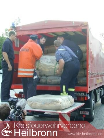 Auf Weisung des Innenministeriums Baden Württemberg wurden am 16. Aug. 2002 60 000 leere Sandsäcke in das Katastrophengebiet nach Dessau transportiert.
