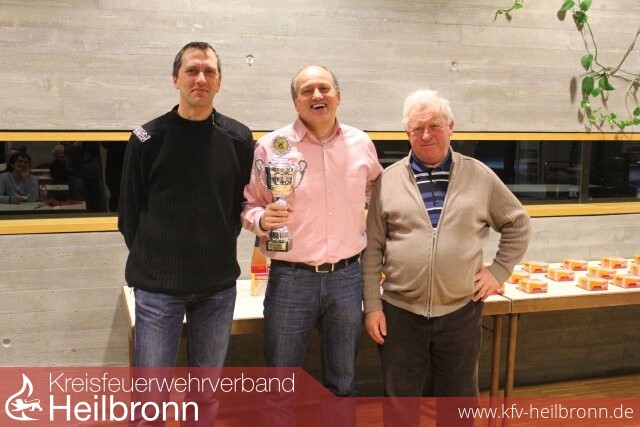 Nach 30 Spielen stand dann der Sieger des Preisbinokelturnier der Feuerwehr Lauffen fest. Mit einer Geamtpunktzahl von 6476 Punkten durfte Feuerwehrkamerad Gerhard Wagner als Sieger den Pokal und einen Feuerlöscher als Preis entgegen nehmen. Einen 2. Platz belegte mit 6030 Punkten Josef Krupp und der 3. Platz mit 5477 Punkten ging mit Armin Winkler auch an einen Lauffener Feuerwehrkameraden.