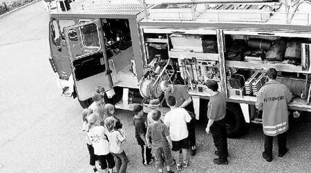 Interessiert verfolgten die Grundschüler aus Neuenstadt die Fahrzeugtechnik der Feuerwehr. (Foto: Markus Schuster)
