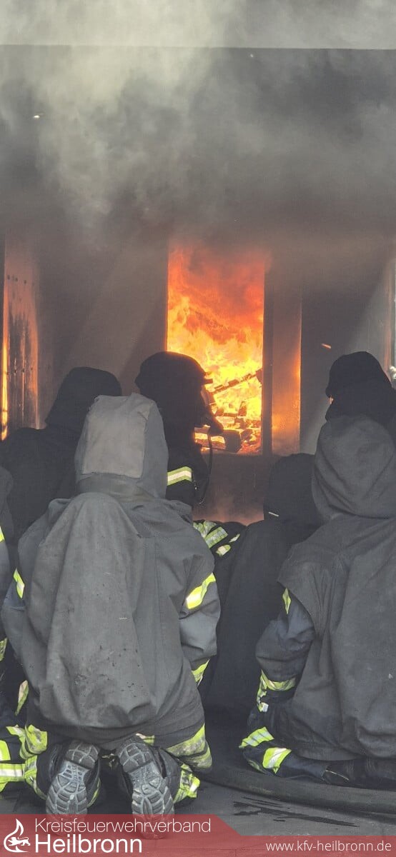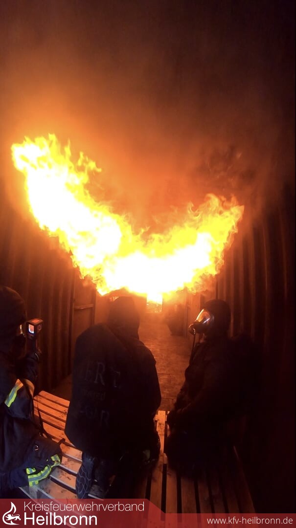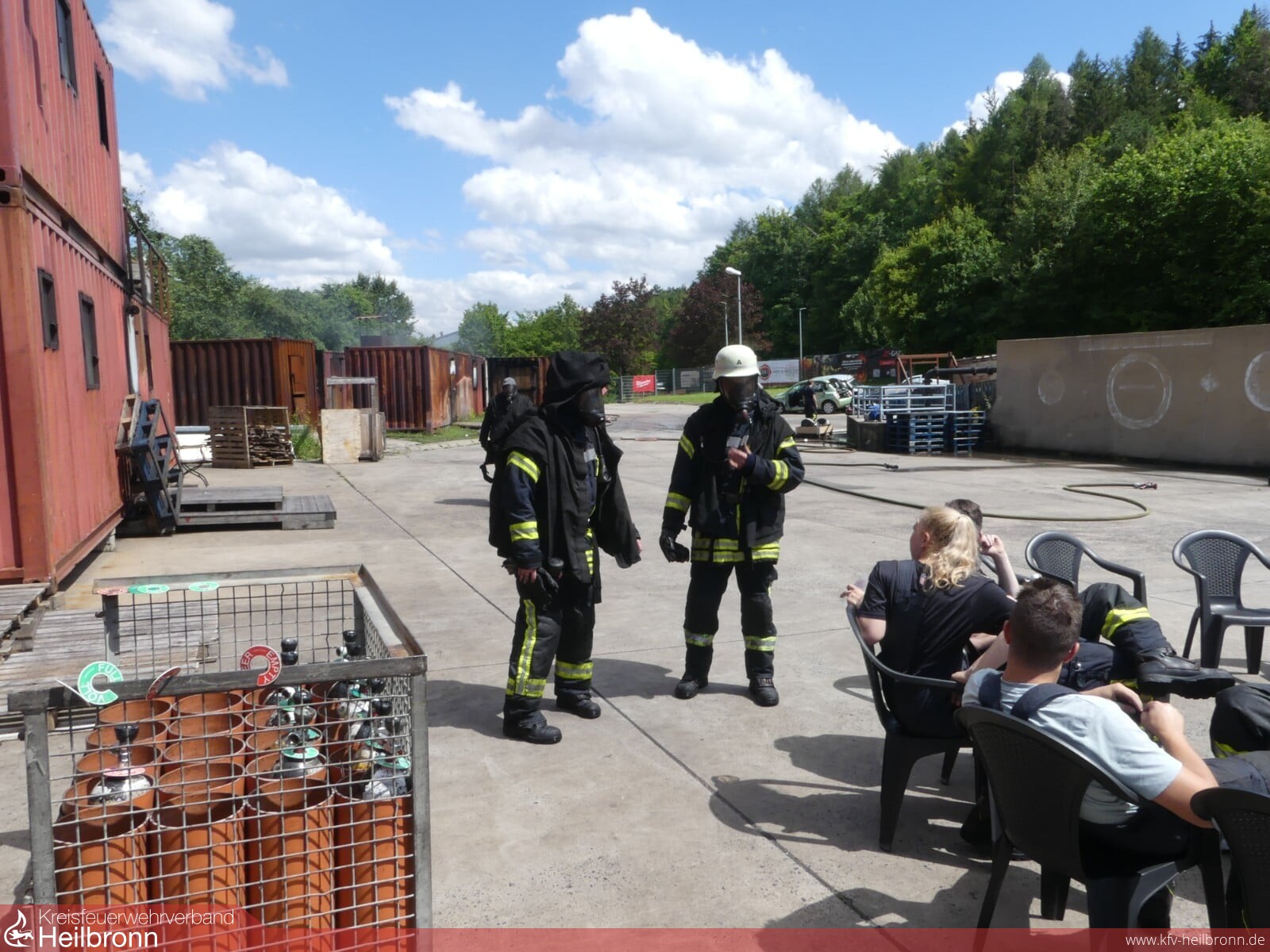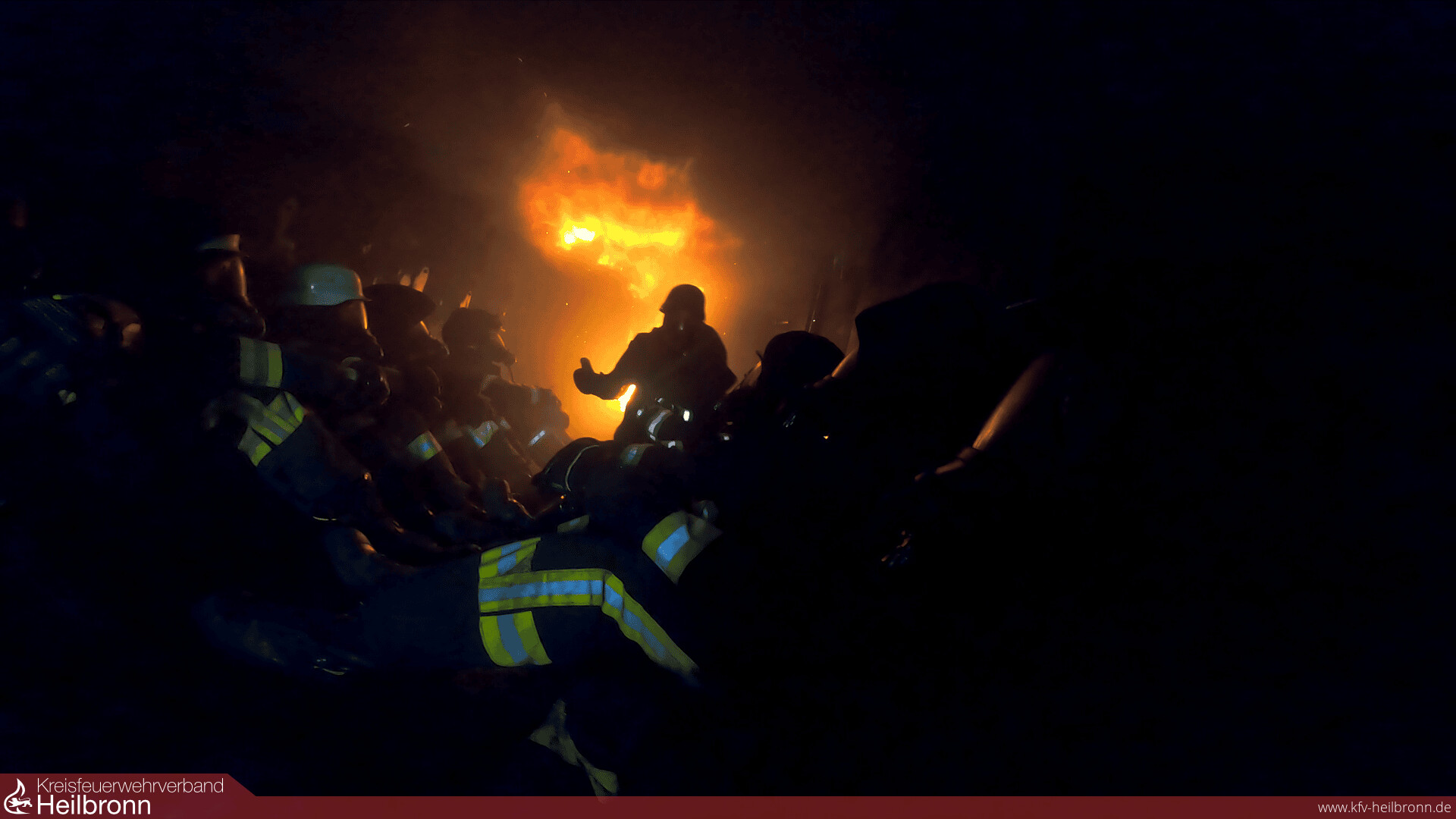 Begonnen wurde mit einem zweistündigen Theorieunterricht, hier erfuhren die Teilnehmer/innen u. a. einiges über Brandverläufe, Rauchgasdurchzündungen und taktisches Vorgehen.