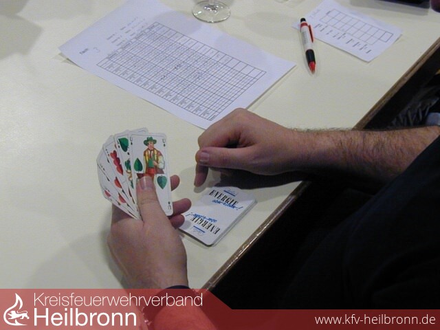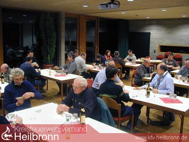 Pünktlich um 19 Uhr ging es nach der Spielauslosung im Feuerwehrhaus los. In Dreiergruppen wurde um den Turniersieg gespielt. Neben ein paar alten Binokelhasen, wie z. b. dem mit 86 Lebensjahren älteste Spieler Stefan Eberhardt, versuchten auch zwei Anfänger ihr Glück. Diese hatten erst zu Weihnachten, extra für dieses Turnier, mit dem Binokelspielen begonnen. Erfreulich war zudem noch, dass im Spielerfeld zwei Binokelspielerinnen dabei waren.