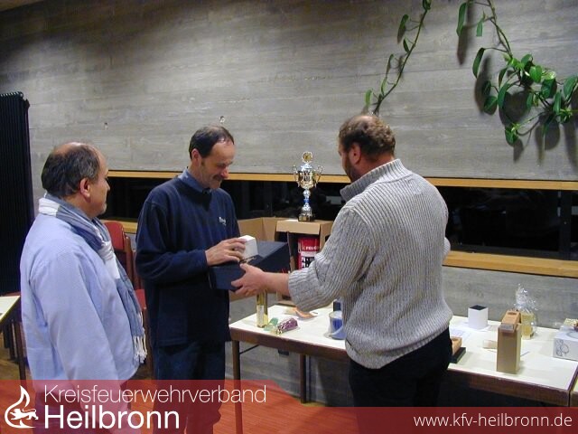 Nach zwei heißen Runden mit jeweils 15 Spielen, stand dann der Sieger des Binokelturniers fest. Neben dem Wanderpokal, konnte Kommandant Heiner Schiefer dem Gewinner Gerhard Wagner als als 1. Preis des Preisbinokel einen Feuerlöscher überreichen. Zweiter Sieger wurde Jürgen Stöcker und über den 3. Preis durfte sich Werner Eberhardt freuen.