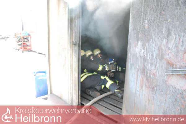 Um realistisch üben zu können befand sich auf dem Übungsgelände eine Feststoffbefeuerte Brandübungsanlage, in dem Temperaturen von mehreren hundert Grad Celsius erreicht wurden. Unter „Nullsicht“, durch die schwarze Verrauchung, wurde die Personensuche, das Auffinden von Bränden und Glutnestern geübt und die Grenzen einer Wärmebildkamera aufgezeigt. Der Container war in mehrere Bereiche aufgeteilt. In ihm befanden sich eine Kriech- und Hindernisstrecke für Orientierungsübungen, diverse Räume zum trainieren der Personensuche und einem Raum mit einer Brandstelle, in dem uns gezeigt wurde, wie sich der Löscherfolg auf dem Monitor der Wärmebildkamera darstellt.