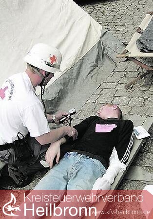 Nachdem trotz Erstversorgung durch das Rote Kreuz keine Stabilisation des Zustandes eintrat, riefen die Helfer selbst um Hilfe, ließen also den Notarzt kommen. Der entschied nach gründlicher Untersuchung und Infusion auf den Abtransport ins Krankenhaus. Auch eine Feuerwehrfrau wurde mit leichteren Kreislaufproblemen von Rot-Kreuz-Helfern und Notarzt behandelt und danach in die Klinik gebracht.