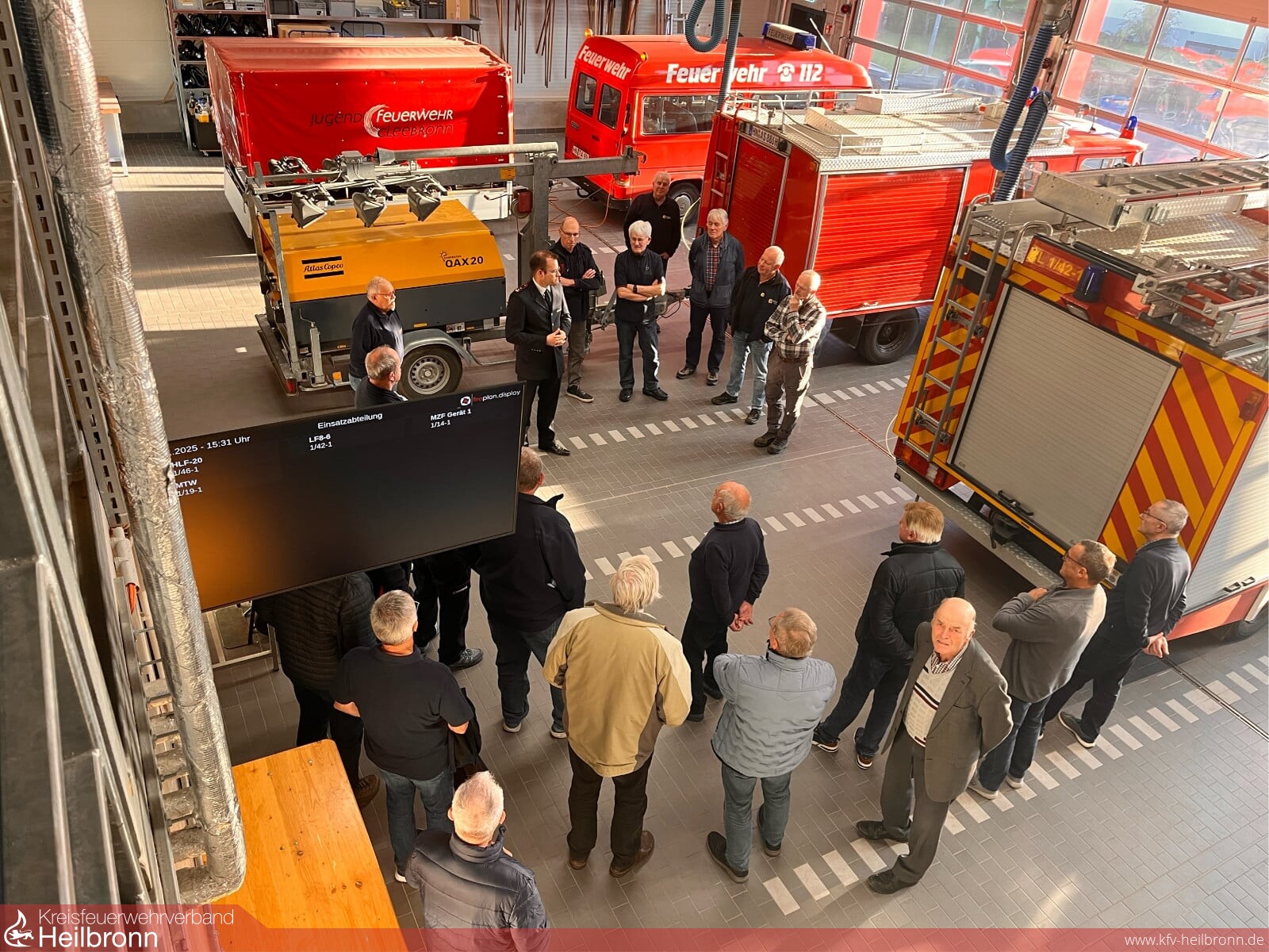 Nun hieß Kommandant Florian Schütz die Alterskameraden im, durch Um- und Anbau erweiterten und 2024 bezogenen, Feuerwehrhaus willkommen. Er schilderte kurz den Weg dahin. Über eine Machbarkeitsstudie wurden verschieden Möglichkeiten der Erweiterung untersucht und Feuerwehr und Gemeinde entschieden sich letztlich für die nun realisierte Lösung. Später, bei einem Rundgang, konnten sich die Alterskameraden von diesem gelungenen Konzept überzeugen. Es ist ein zeitgemäßes und funktionelles Feuerwehrgerätehaus mit ausreichend Platz für den Einsatz- und Übungsbetrieb entstanden.
