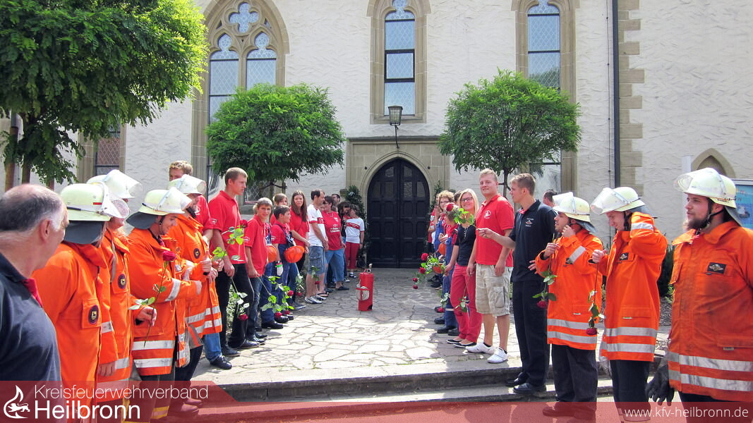 Einige unserer Kammeradinnen und Kammeraden, sowie die Jugendfeuerwehr hatten sich mit roten Rosen zum spalierstehen vor der Kirche versammelt.