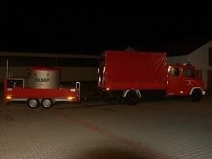 Seit Freitag sind drei Helfer der Feuerwehr Bad Friedrichshall mit einem Feuerwehrfahrzeug (GW-T) und dem fahrbaren Ölsanimat (Ölsep) im Landkreis Delitz, nördlich von Leipzig, im Einsatz.