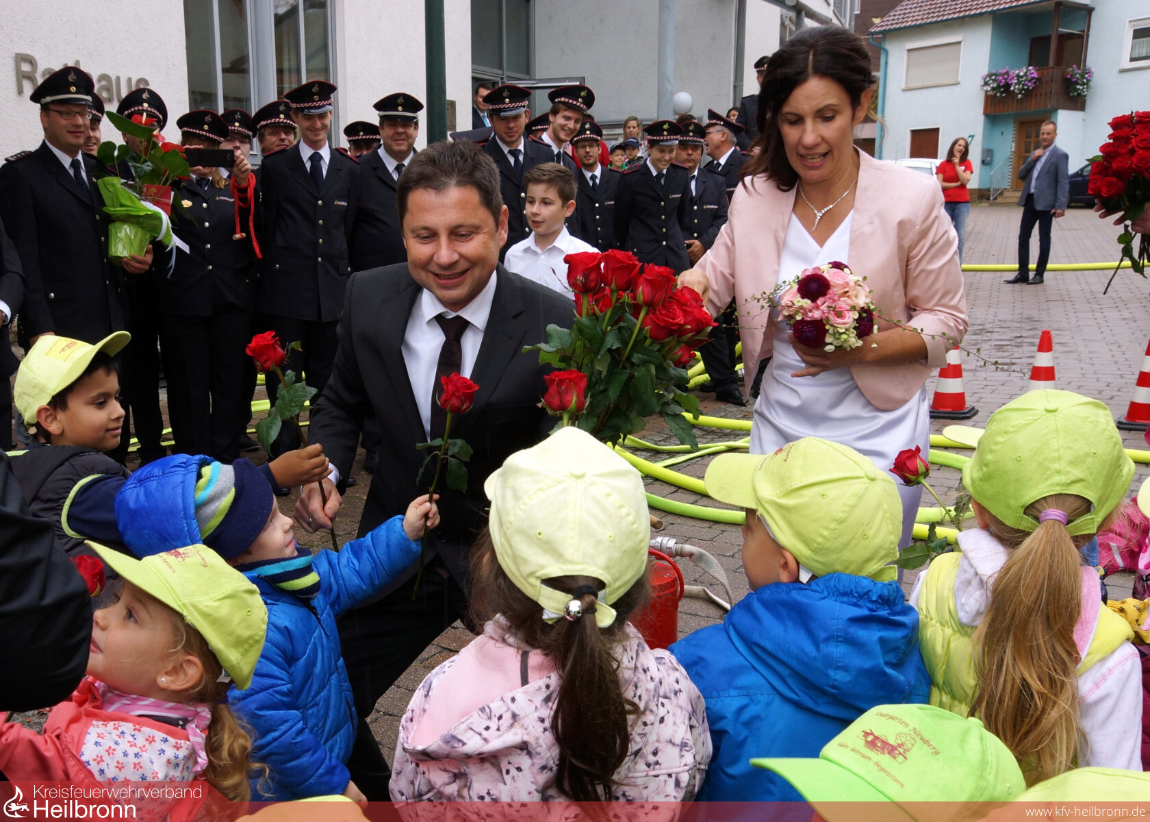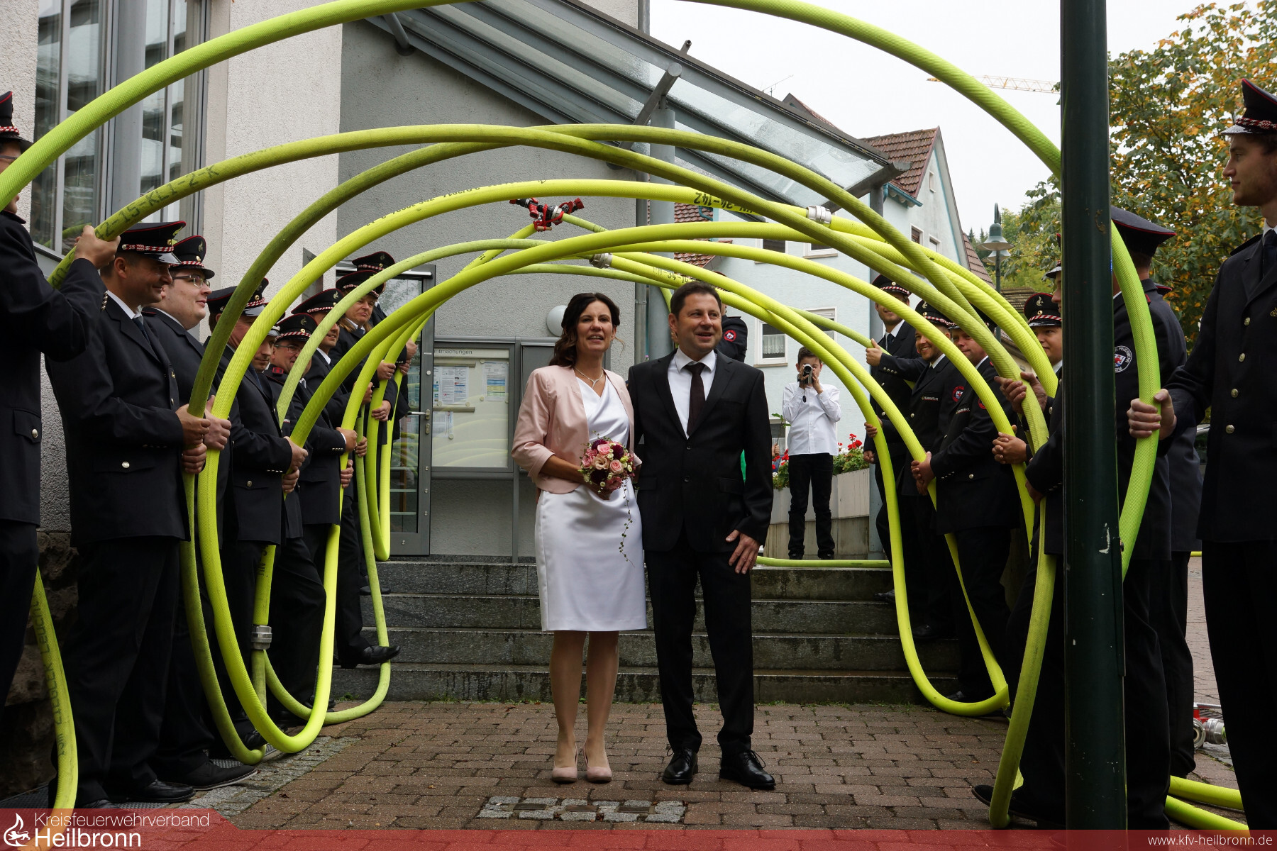 Viele Jahre hat es gedauert, nun war es soweit: Unser langjähriger Feuerwehrkamerad und Stv. Kommandant Bernd Ehrhardt und seine Ehefrau Patricia haben sich vor Bürgermeister Matthias Schmitt auf dem Oedheimer Rathaus das Ja-Wort gegeben. Selbstverständlich ließen wir uns dieses tolle Ereignis nicht entgehen und viele Feuerwehrkameraden und - kameradinnen standen Spalier vor dem Rathaus. Kommandant Sven Kübler und alle Feuerwehrleute gratulierten neben vielen anderen Gästen den beiden zur Hochzeit.