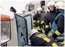 Kein Gefahrgutzug Die erste, reale Unglücksbotschaft trifft um 8.50 Uhr ein. Sie kommt von den Kameraden aus Bad Rappenau. Ihr Gefahrgutzug ist liegengeblieben. Uwe Thoma bleibt gelassen. „Im Ernstfall wären wir auch erstmal auf uns allein gestellt." Schwerer Verkehrsunfall auf dem Kaufland-Gelände lautet die gerade eingegangene Meldung. Ein Auto steht da, ein anderes liegt auf der Seite, der Fahrer ist eingeklemmt. Jeder weiß, was zu tun ist. Jeder Handgriff sitzt. Das Auto wird stabilisiert. Dann kommt die Frontscheibe raus, dann der Verletzte - ein Dummy aus Holz. Nach acht Minuten ist alles vorbei.